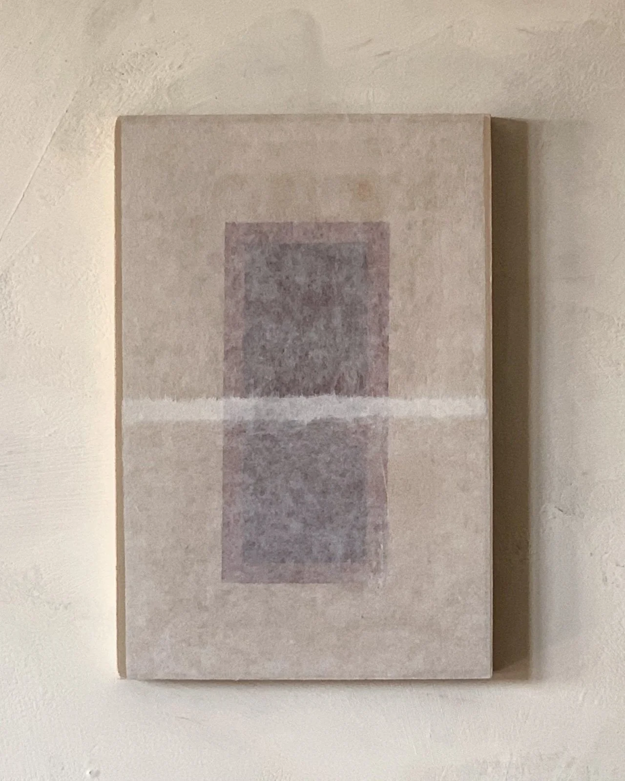acrylic, dry pigments, matte medium, Japanese paper on wood panel